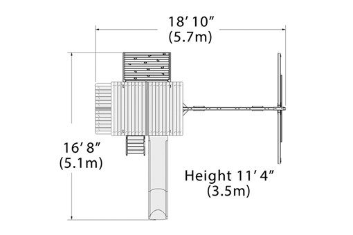 The Adventure Outlook XL 2 swing set incorporates our best engineering and highest quality materials. The fort structure has a 5′ high deck with over 25 sq. ft. of play space. This play structure also includes wood roof XL, gable kit, 3 position swing beam, 2 – belt swings, trapeze bar, playhouse, XL, side table with roof, 5′ rock wall XL, and double walled wave slide. Summit Outlook play sets include a limited lifetime warranty on all wood, metal, and hardware components.