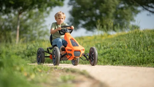 Make a splash in the neighborhood with the BERG Buddy Go-Kart. You will be sitting comfortably in the spacious bucket seat. The steering wheel has optimal grip and is already prepared for the BERG Soundbox! (Excludes Graphite and Grey models) Whichever version you choose… with the Buddy, you’ll certainly be the coolest driver on the street!