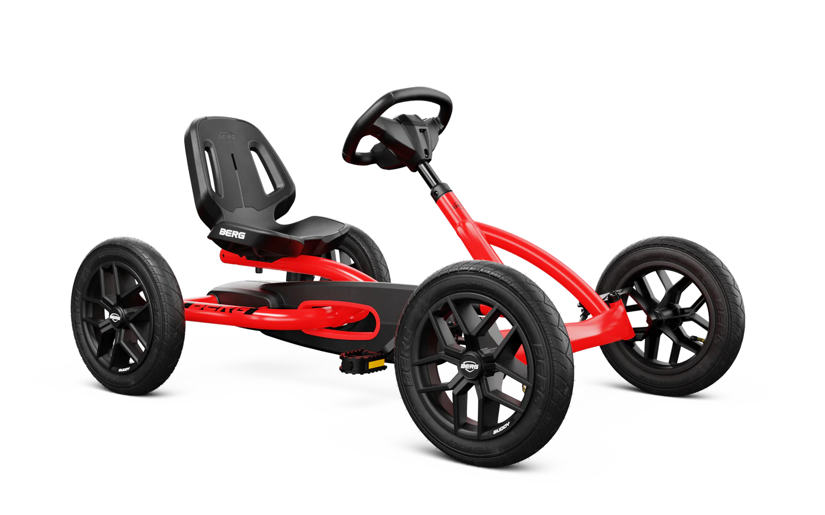 Make a splash in the neighborhood with the BERG Buddy Go-Kart. You will be sitting comfortably in the spacious bucket seat. The steering wheel has optimal grip and is already prepared for the BERG Soundbox! (Excludes Graphite and Grey models) Whichever version you choose… with the Buddy, you’ll certainly be the coolest driver on the street!