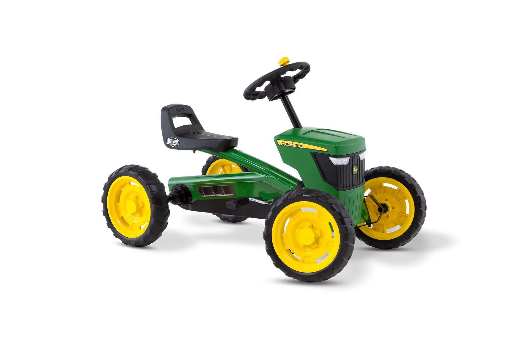 The four wheels make the BERG Buzzy Go-Kart much more stable than a three-wheeler. It’s really safe! And because the pedals aren’t connected to the handlebars, your child’s feet remain firmly on the pedals, even in the sharpest turns. This makes pedaling a lot easier, and the Buzzy glides over the sidewalk or asphalt. And it goes backwards just as fast! Do you like music? The Buzzy Beatz and Buzzy Police come standard with a built-in Soundbox in the steering wheel.