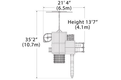 The Titan Treehouse XL 6 swing set is loaded with play activities on all sides! The fort structure has two 7′ high decks, a 6′ tower, and a lower playhouse with 115 sq. ft. of play space. This swing set also includes wood roofs, gable extension roof, 2 – gable kits, lower playhouse, 3 position 10′ swing beam, 2 – belt swings, trapeze bar, 14′ rocket slide, 7′ open spiral slide, 7′ rock wall, 6.5′ high ultimate climber monkey bars, pergola with side table, extra playhouse wall, and a 6′ fireman’s pole. Treehouse Series play sets include our exclusive limited lifetime warranty on all wood, metal, and hardware components.